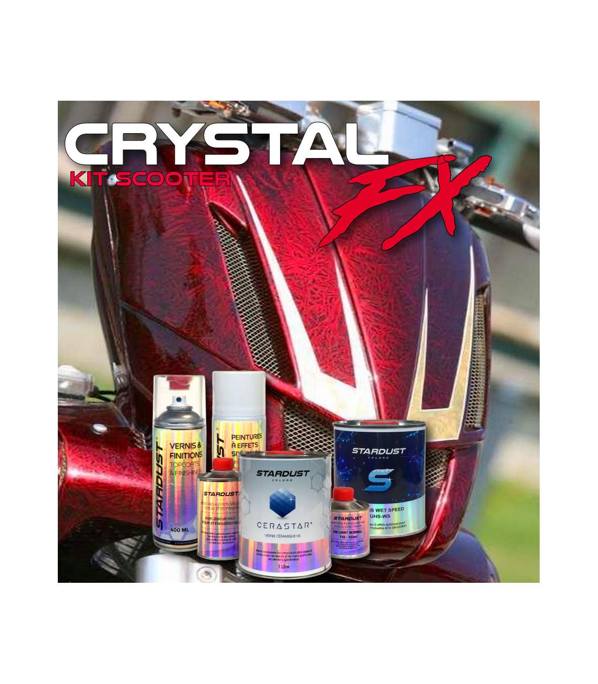 Dieser komplette Satz von Farben wird speziell für Fahrzeuge der Größe eines Motorrollers, und für Lackierer verfertigt, die über keine Spritzpistole verfügen.
